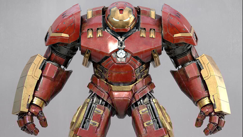 The Hulkbuster is a perfect subject since it requires a complex layered paint shader including coat, metal underlayer, dirt, dust and scratches. It’s an ideal deep dive into advanced shader construction.