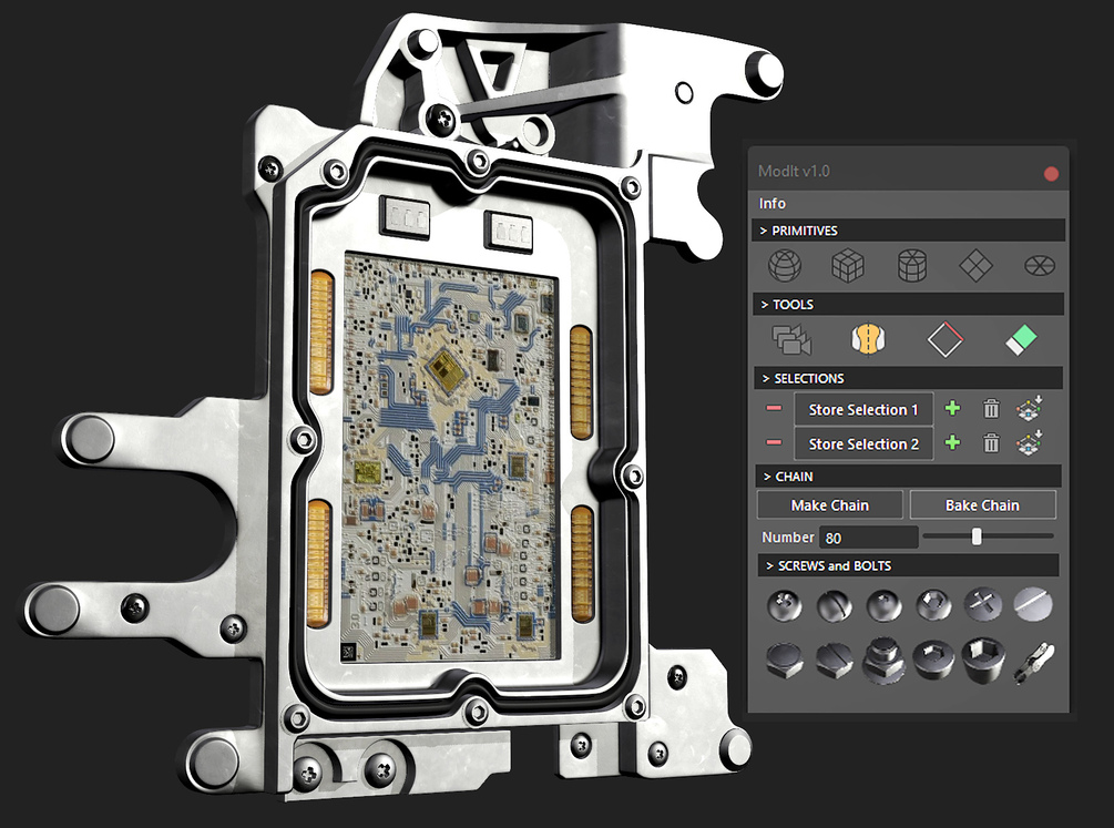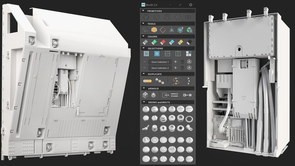 ModIt will support and speed up your HardSurface Workflow with the automating of simple and repetitive task like Primitives creation, duplicate merge etc...
